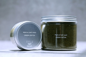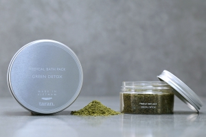 Ingredients: epsom salt, cordata powder, moringa powder, mulberry powder, lavender essential oil